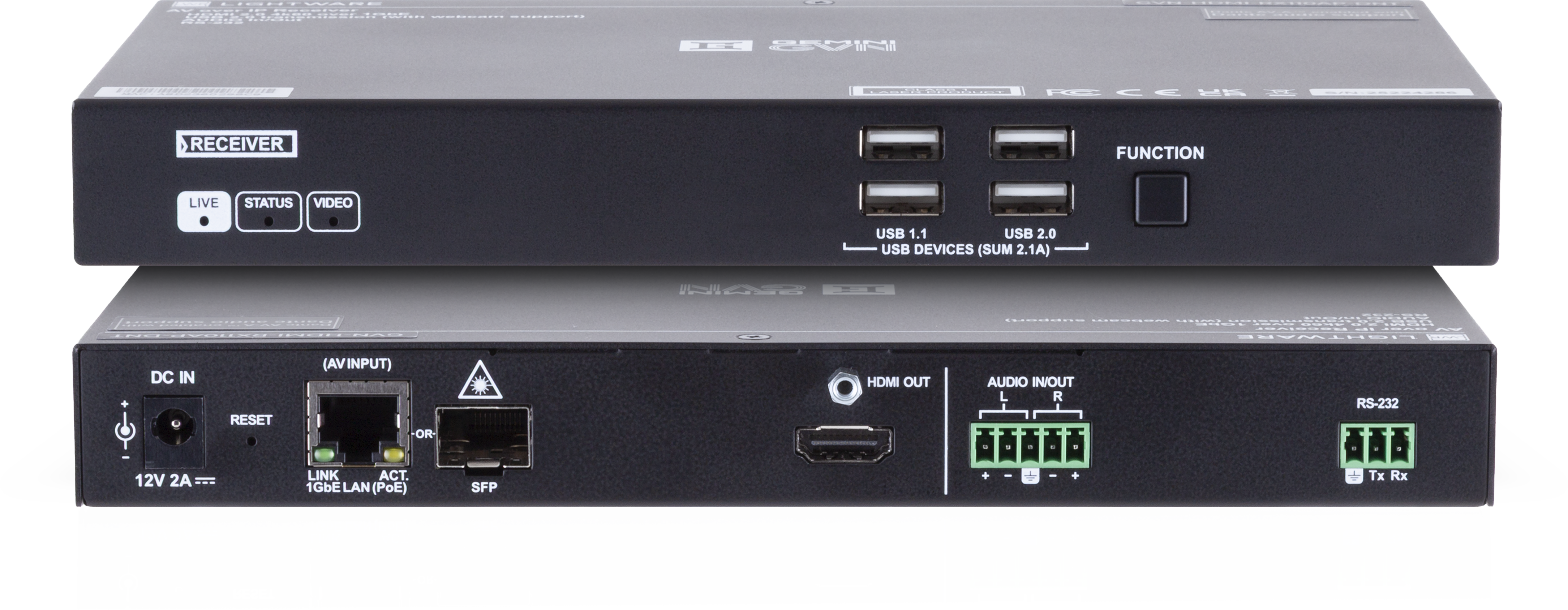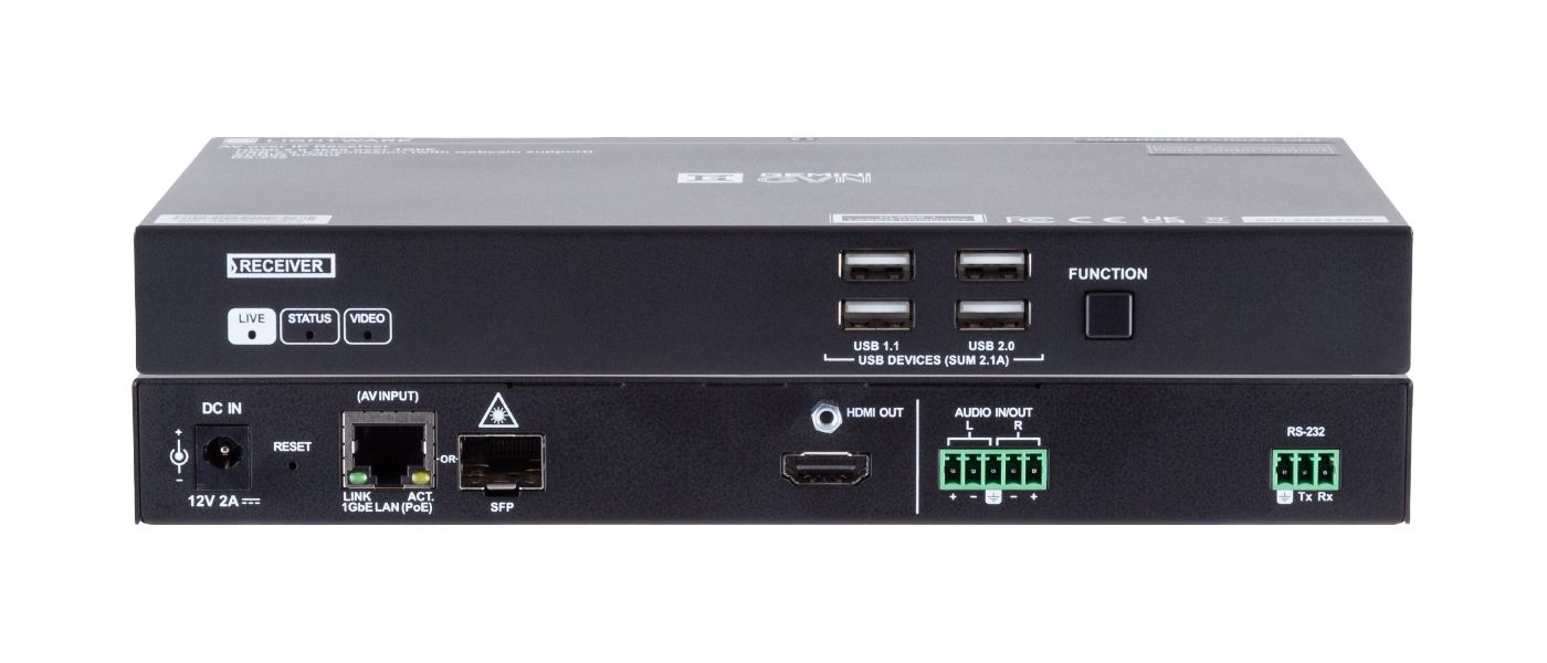 Он поддерживает те же высокие характеристики, что и передатчик: 4K при 60Гц, 4:4:4, нулевую задержку (zero frame latency) и HDCP 2.2, обеспечивая бесшовную (seamless) интеграцию с дисплеями любого типа.