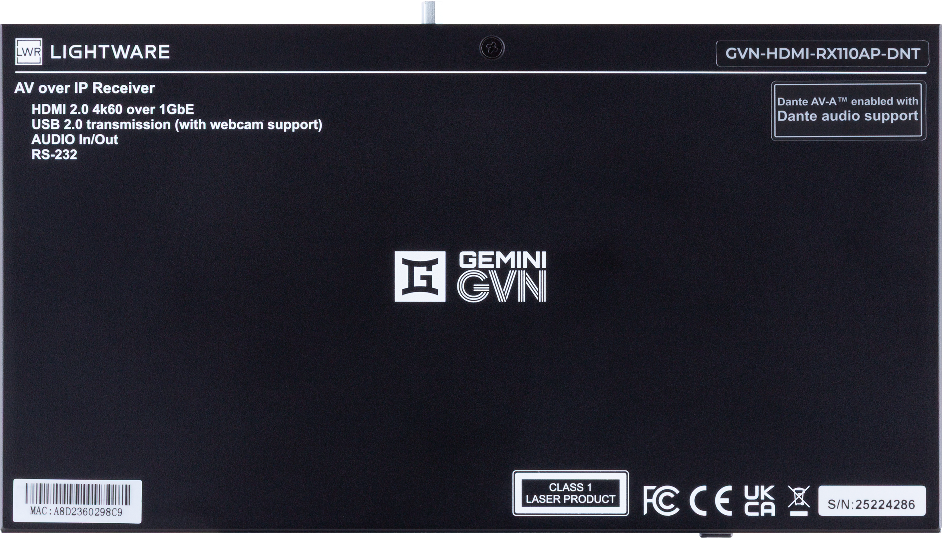 GVN-HDMI-RX110AP-DNT – это модуль-приемник системы Gemini GVN, предназначенный для вывода сигналов и декодирующий IP-поток обратно в HDMI.