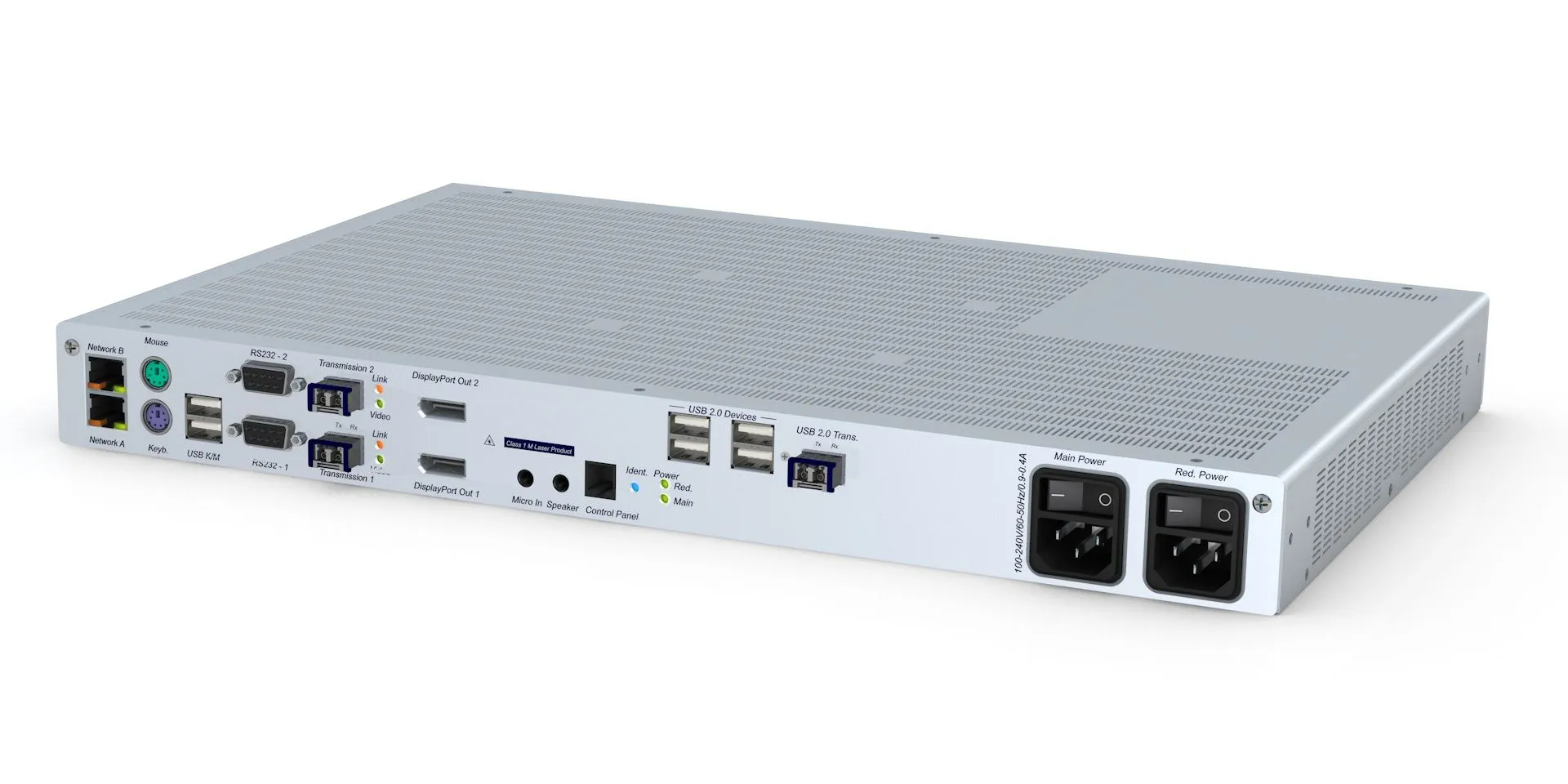 DL-Vision(M)-ARU2+CON - КВМ приемник по оптоволокну (multi mode) на дистанцию до 400 м. с интерфейсами DVI (DL)*1(до 2560 x 1600 @ 60 Hz или 2048 x 2048 @ 60 Hz или 4K (4096 x 2160) @ 30 Hz ; 2k (2048 x 2048 @ 60 Hz)) +audio +USB HID + USB 2.0 (480 Mbit/s) +PS/2 +RS232, с функцией мониторинга по IP (SNMP) и встроенным Web сервером для управления, подключение локальной консоли ,с набором креплений для монтажа в 19" стойку ,напряжение питания 220В (двойной блок питания)