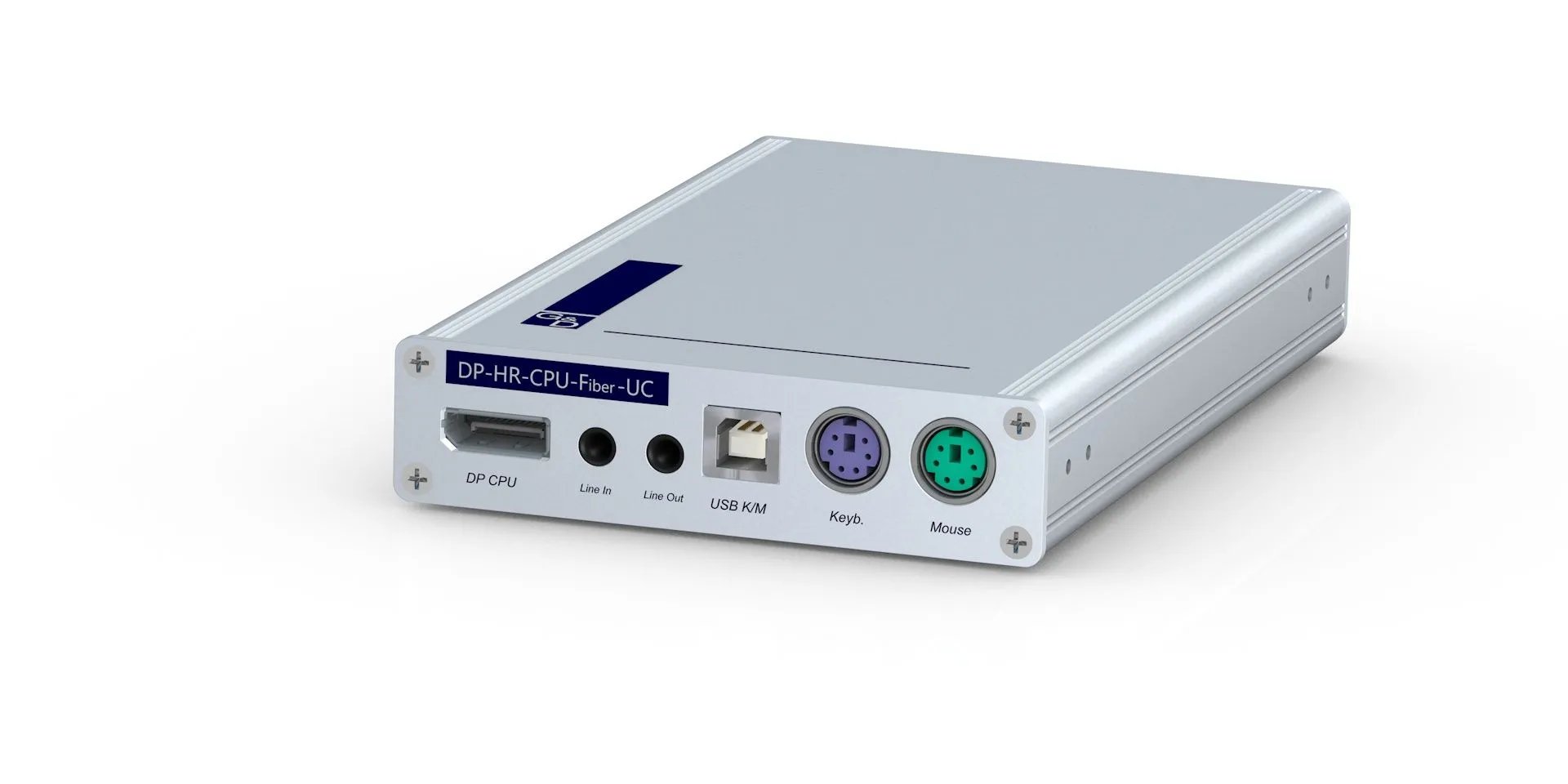 DP-HR-CPU-Fiber(M)-DH-UC - КВМ передатчик матричного КВМ коммутатора по оптоволокну  на дистанцию до 400 м. С интерфейсами DisplayPort, с разрешением   (2*1920 x 1200 @ 60Hz) +audio  + USB HID +PS/2, (2 порта передачи данных), напряжение питания 220В