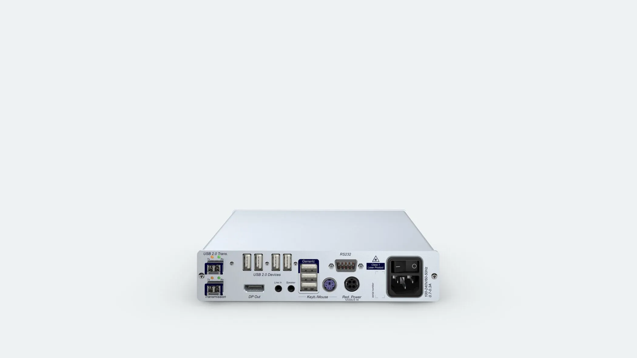 DP1.2-Vision-Fiber(M)-ARU2-CON - система KVM удлинения на дистанцию до 10000 м., (Multi mode), с интерфейсами DisplayPort (4K и UltraHD @ 60 Hz; 8K @ 30 Hz (при использовании двух видеоканалов); 8K @ 60 Hz(при использовании двух видеоканалов)) +audio +USB HID + USB 2.0 (480 Mbit/s) +PS/2 + RS232 , с функцией мониторинга по IP (SNMP) и встроенным Web сервером для управления, подключение локальной консоли ,с набором креплений для монтажа в 19" стойку c напряжением питания 220В.