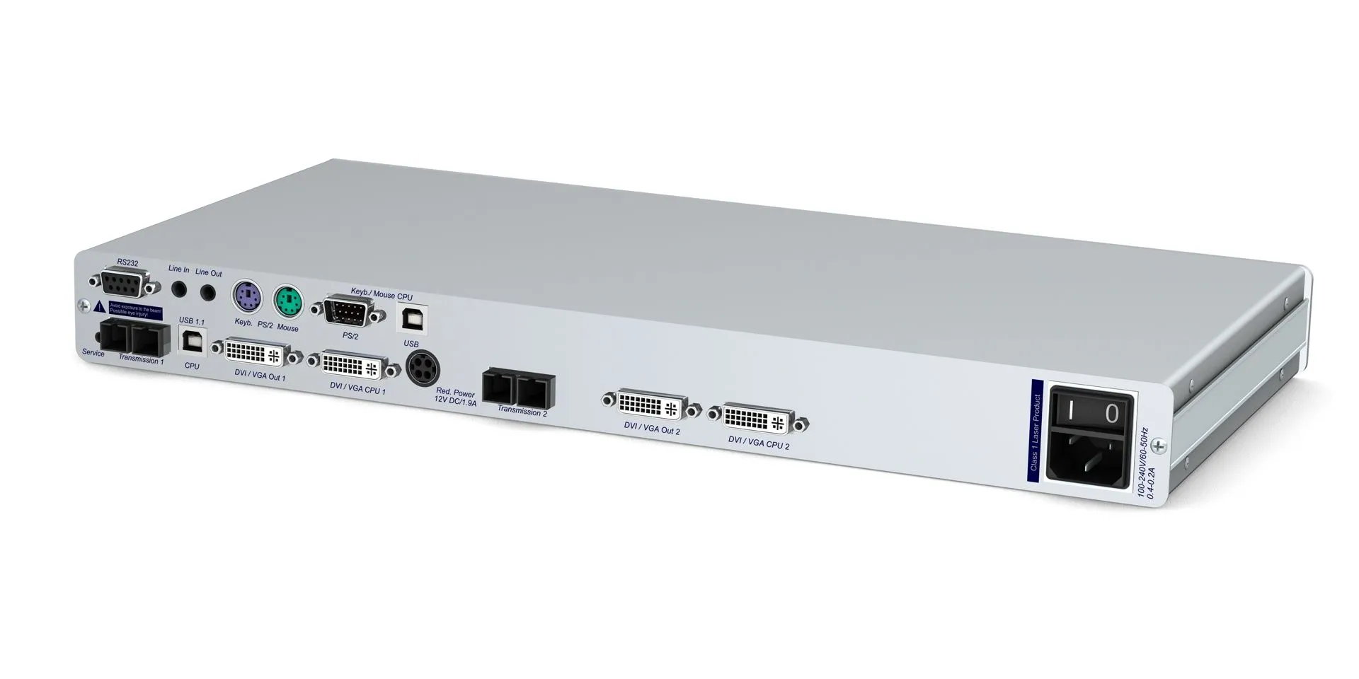 сразрешением (1920 × 1200 @ 60 Hz) +audio +USB HID + USB 2.0 (480 Mbit/s) +PS/2 + RS232, подключение локальной консоли с набором креплений для монтажа в 19" стойку, напряжение питания 220В