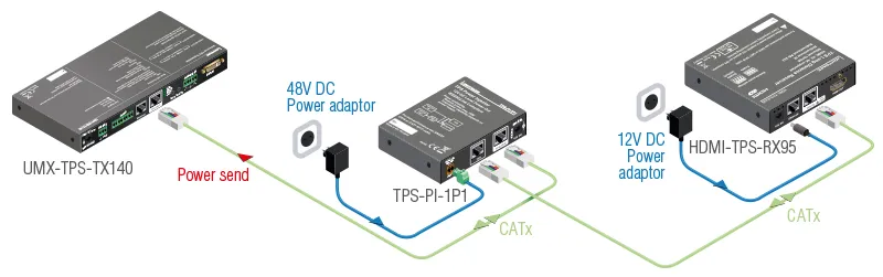 *Дистанционное питание 95 серии HDMI-TPS и устройств DVI-HDCP-TPS не доступны через инжектор питания TPS-PI-1P1.