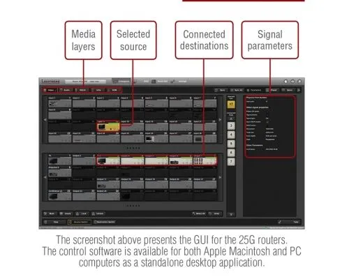 Слой передачи данных RS-232 и RS-422 - это двунаправленный канал связи, более надёжный, чем инфракрасный порт IR, является основным в профессиональных системах обработки видео-аудио данных. Архитектура матрицы 25G Hybrid является полностью прозрачной для сигналов управления RS-232 и RS-422. Данные порты могут быть соединены друг с другом, или же можно подключить на них любые дополнительные устройства управления системой.