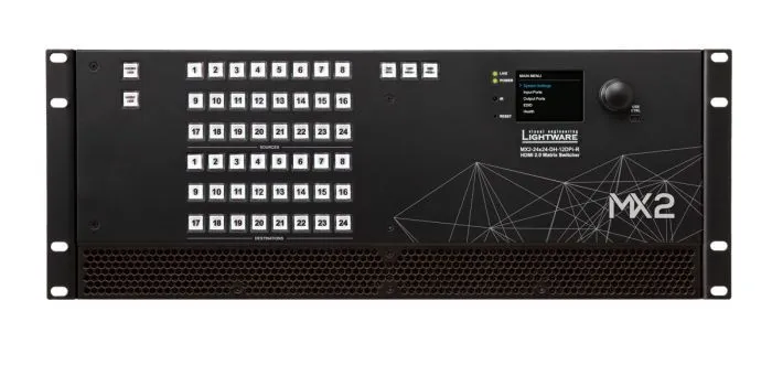 MX2-24x24-DH-12DPi-R относится к серии автономных матричных коммутаторов Lightware MX2 DH, поддерживающей разрешение 4K UHD при 60 Гц с цветовым пространством RGB 4: 4: 4 и возможностью преобразования с понижением частоты до 4: 2: 2. Входы DisplayPort на маршрутизаторах серии MX2 DH позволяют подключать видеоисточники DisplayPort 1.2 напрямую, без использования адаптеров или ключей.