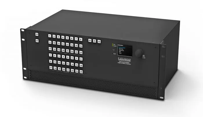 MX2-24x24-HDMI20 - матричный видео коммутатор из серии продуктов Lightware MX, обеспечивающий поддержку коммутации несжатого 4K UHD видео с частотой 60Hz 4:4:4.